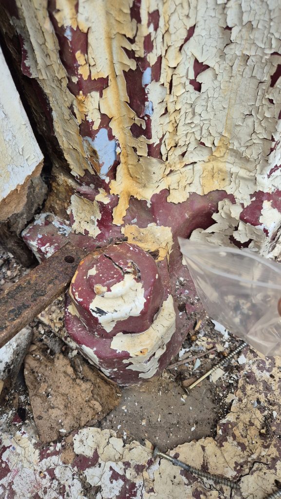 Decades of service have taken their toll, and the inspection photographs show widespread coating failure and heavy corrosion.