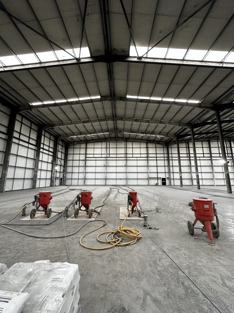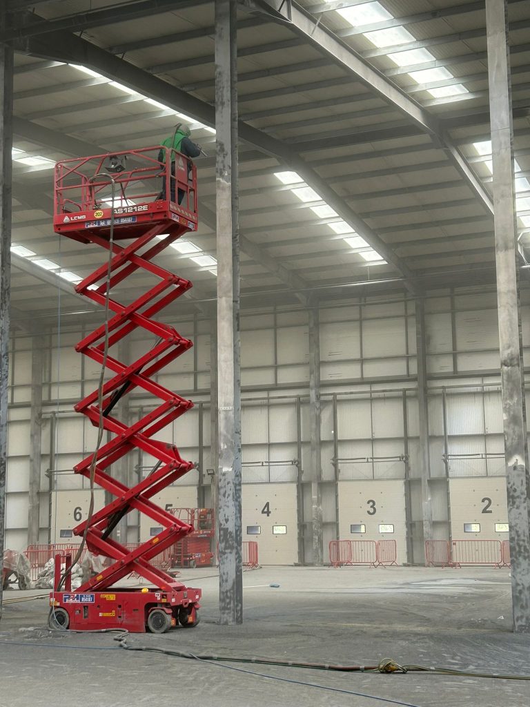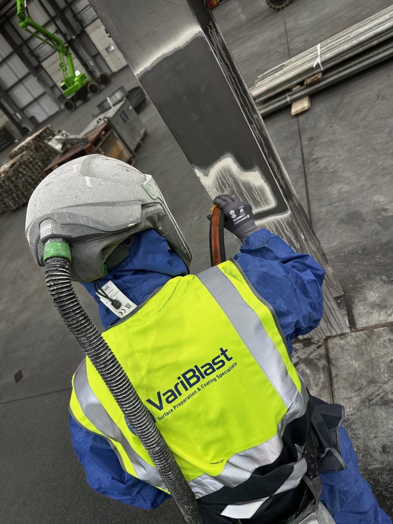 Working at height within the large open interior, our IPAF-certified technicians utilised a MEWP (mobile elevated work platform) to safely access and blast the tall steel columns. The combination of skilled operators and specialised equipment allowed us to reach every surface without compromising quality.